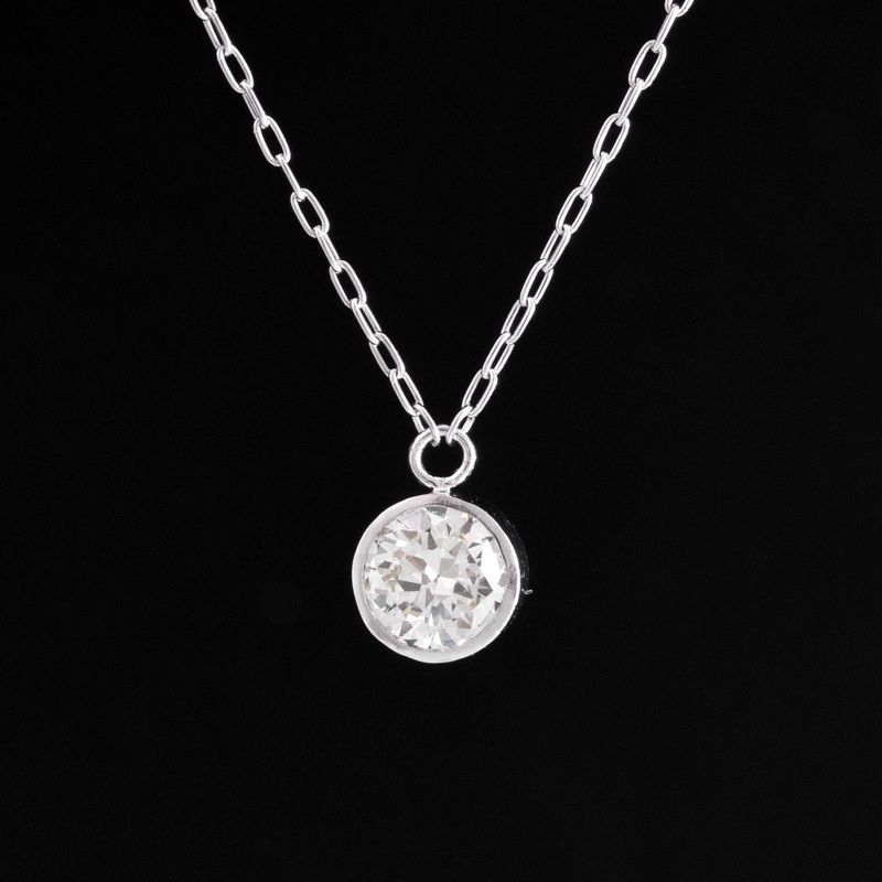Theres something about bezel-set old cuts that we just cant resist, especially when set in pendants! This one is a bright and sparkly Old Euro, stationed onto a petite paperclip link chain for an easy pendant with tons of antique diamond charm. Perfect for daily wear, or a gift for a loved one.