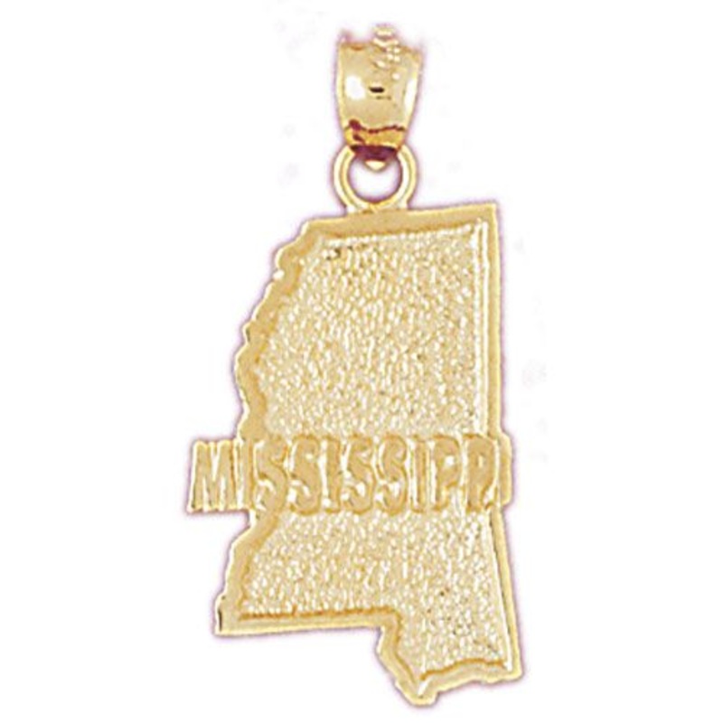 Charm Pendant made by solid 14karats Gold, which has the shape of Mississippi State. It weights 1.8 Grams. You can choose between three different colors of gold: yellow, white and rose gold.Dimensions are 28 x 14 mm (h x w)