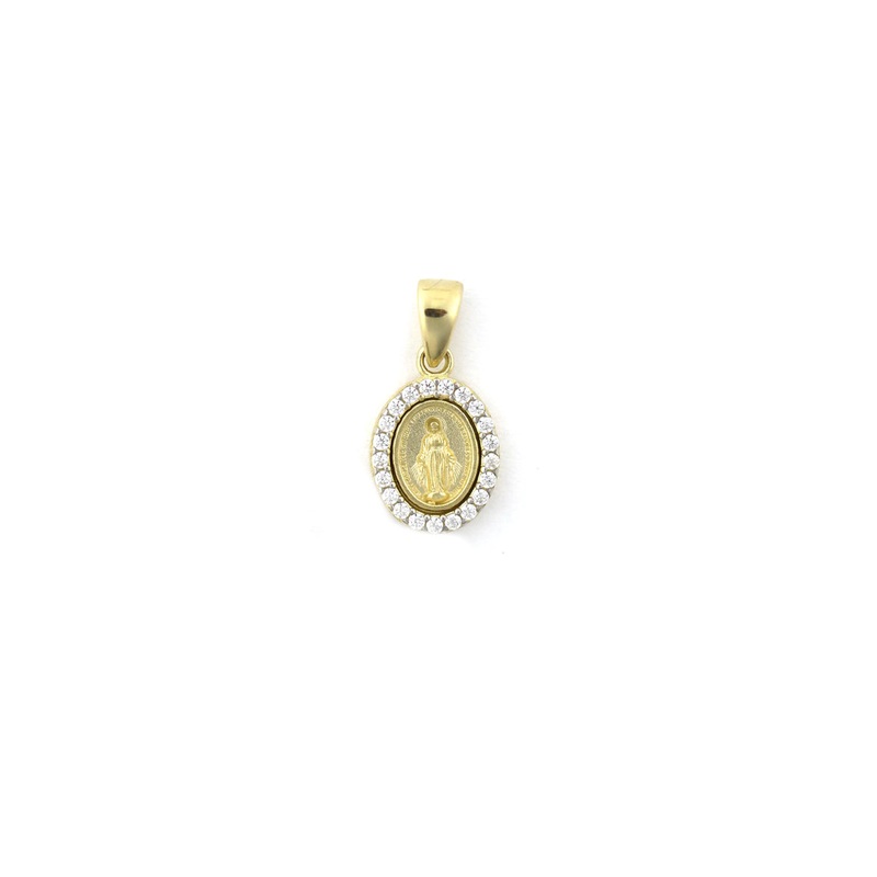 JewelryAdd a tiny bit of sparkle, shine and spirituality to your #neckmess with this Miraculous Mary charm.14K gold, CZ frameApprox 3/8" x 1/2"3mm bail opening