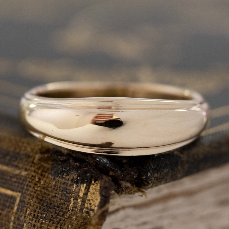 A classic yellow gold band – the perfect accessory for everyday wear, and one of our favorite jewelry staples ever. This one has a triple-row effect to it, giving you big finger coverage and spread! It also gets slightly wider across the top of the finger, and begins to taper down as it moves towards the bottom of the shank. Its manufactured by Orange Blossom, a company that began in the early 1900s and was known for their ornate details and designs! In the late 90s, all of the companys molds were destroyed when the company was sold, making their vintage pieces quiet the fun find.